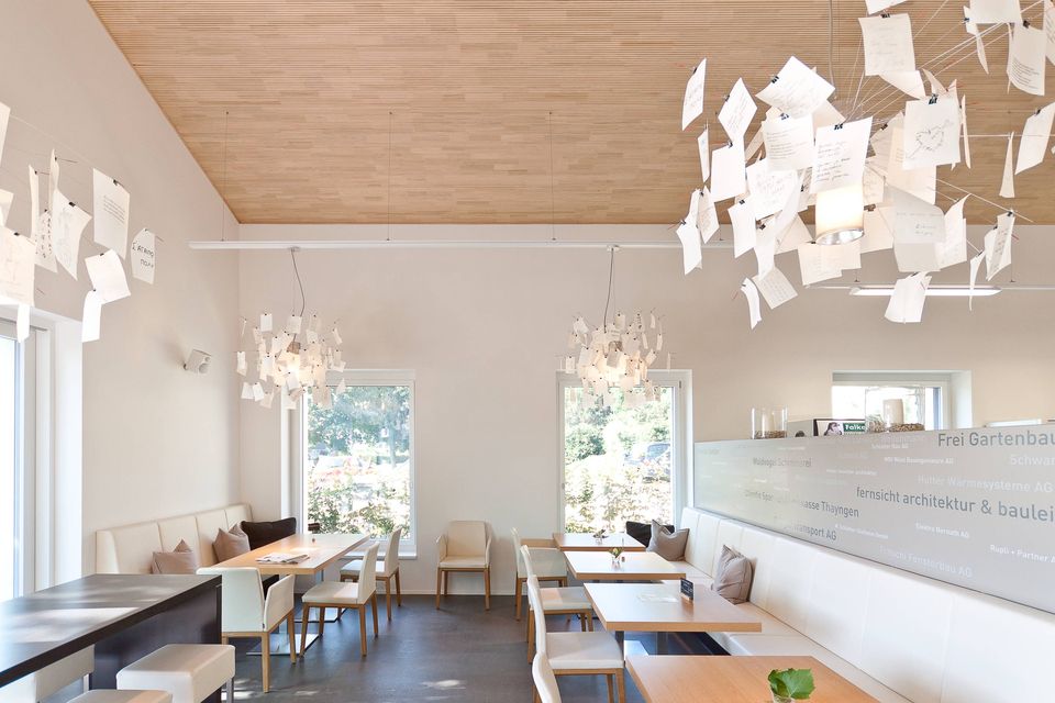 Der Neubau des Gemeindezentrums Stetten wurde als Wettbewerb ausgeschrieben. Aus mehreren anonymen Bewerbern ging Fernsicht Architektur als Gewinnerin hervor und wurde von der Gemeinde Stetten mit der weiterführenden Planung und Bauleitung beauftragt. In dem neuen Gebäudekomplex sind die Gemeindeverwaltung, der Kindergarten, der Mittagstisch und das HochZwei (Dorfladen mit Bistro) untergebracht. Alle Nutzer profitieren von überaus grosszügigen Räumlichkeiten.