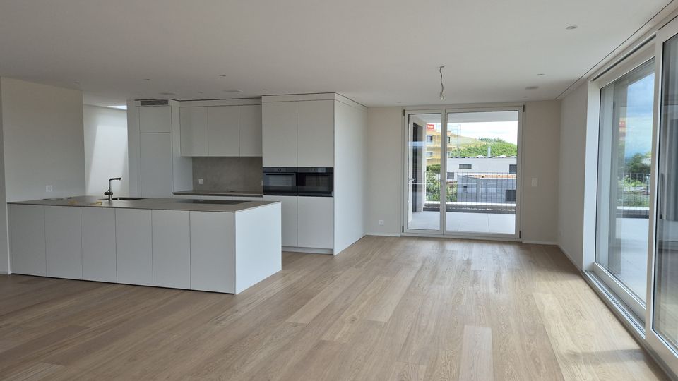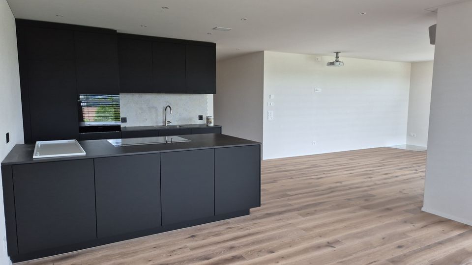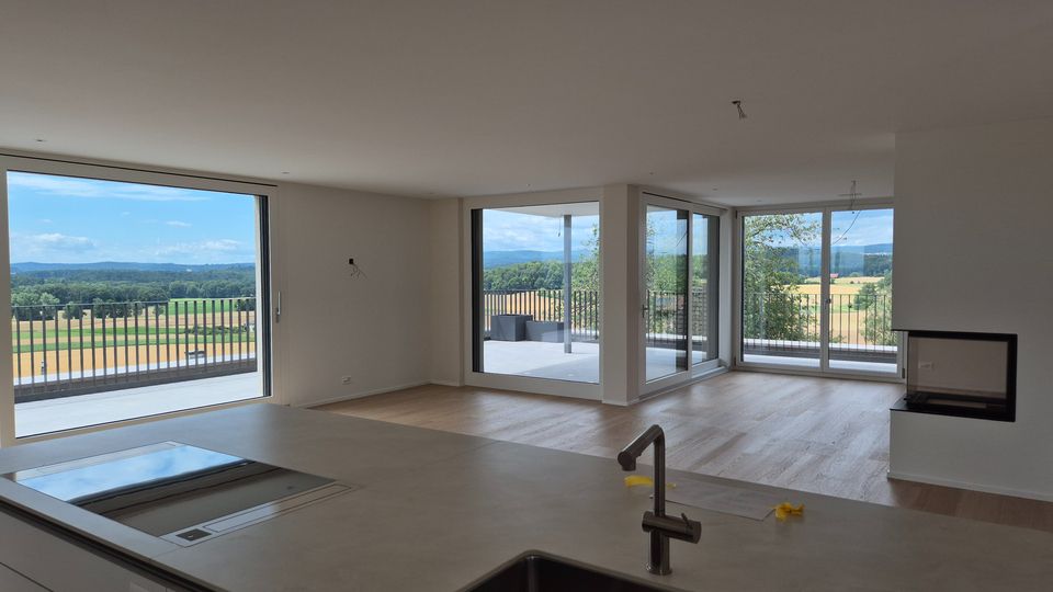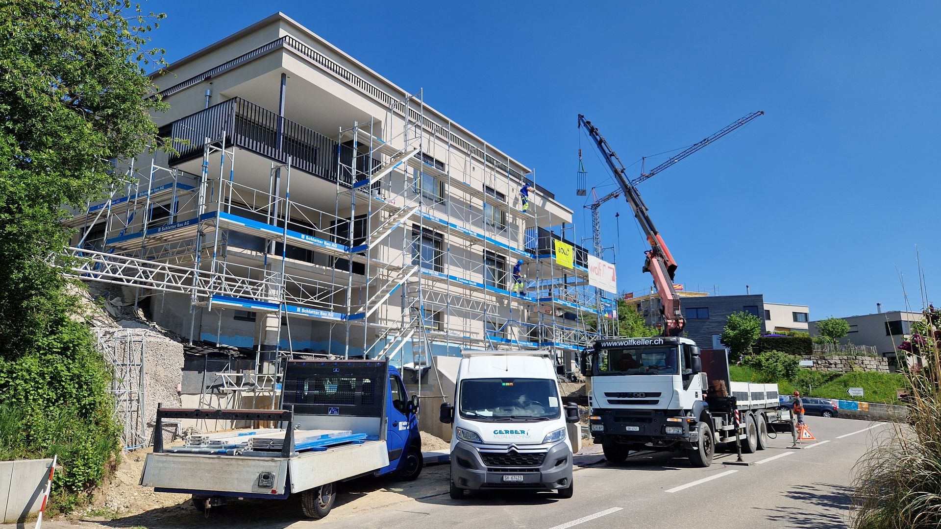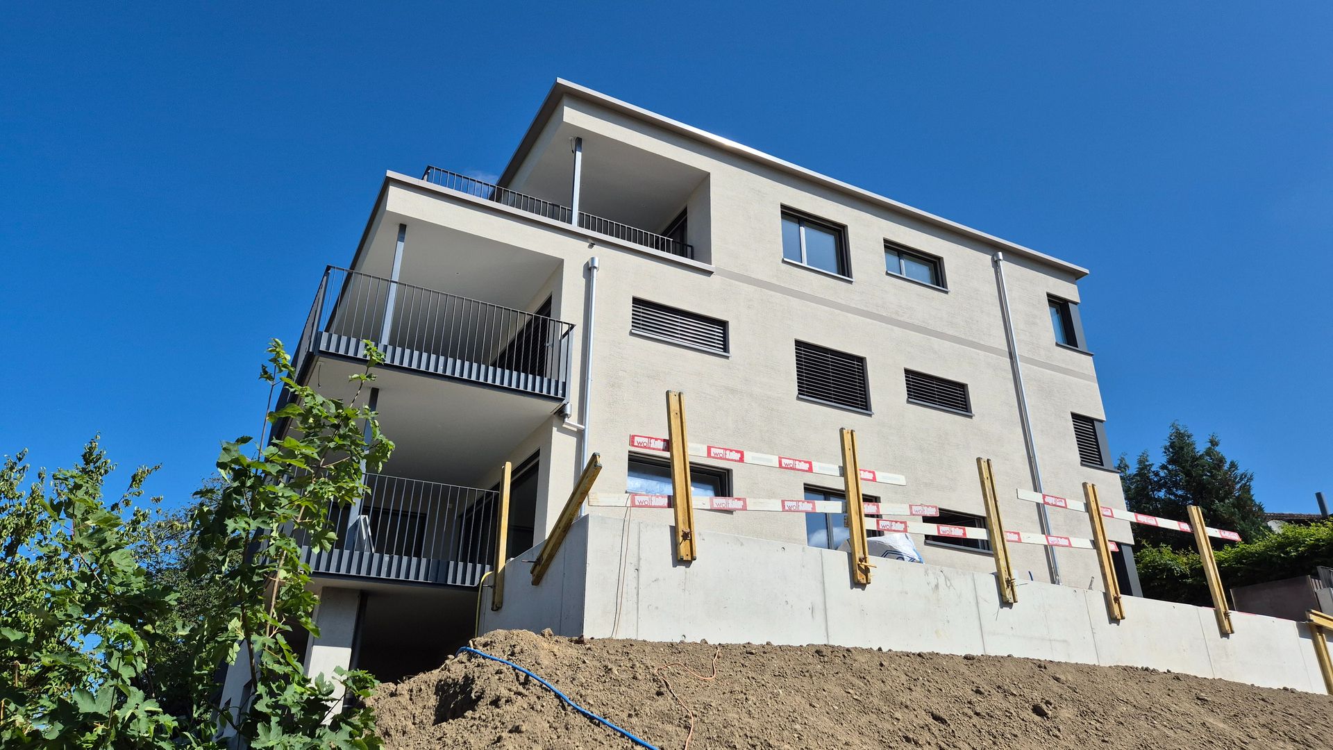 Eingangs Dörflingen hat der Bau des Mehrfamilienhaus «Rhyblick» mit fünf Eigentumswohnungen und einer grossen Tiefgarage im Minergie-Standard begonnen.